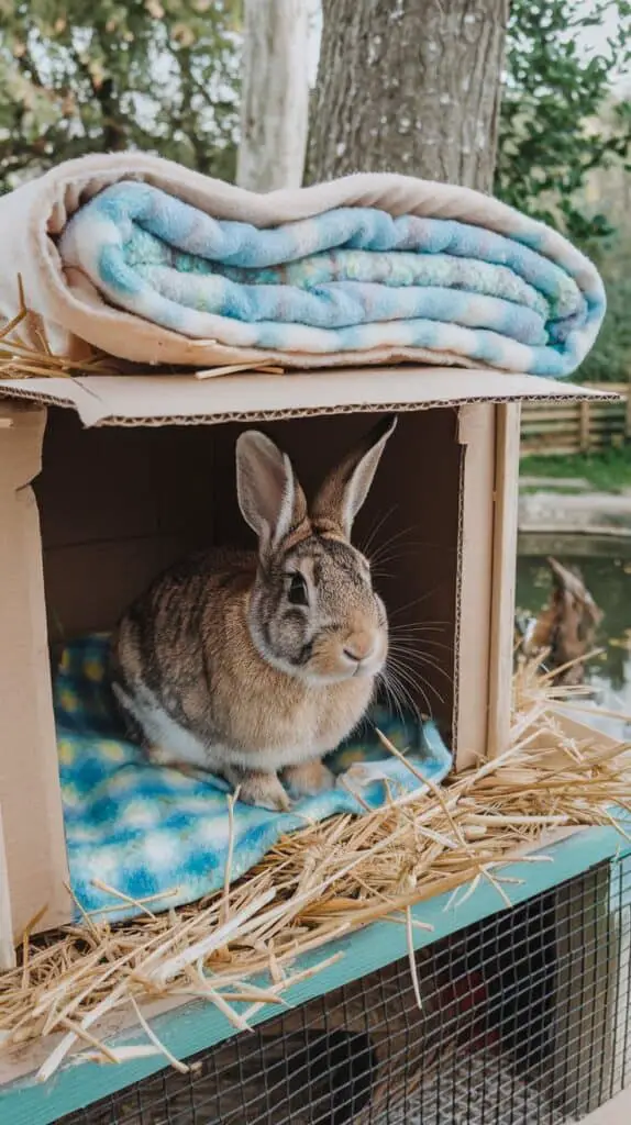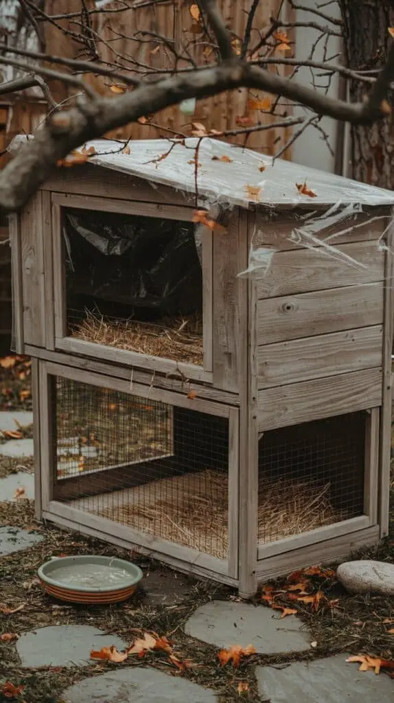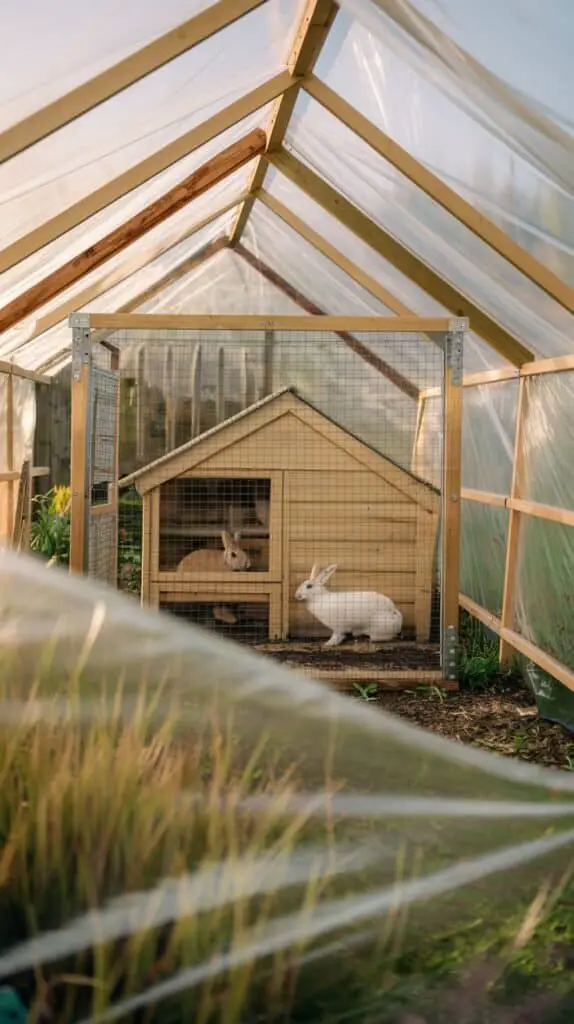 If you’re all in and want to go next level, pop a cheap plastic greenhouse over the whole rabbit hutch. It acts like a windbreaker, keeps rain off, and traps a little warmth during the day. Just make sure you have lots of ventilation on sunny days.