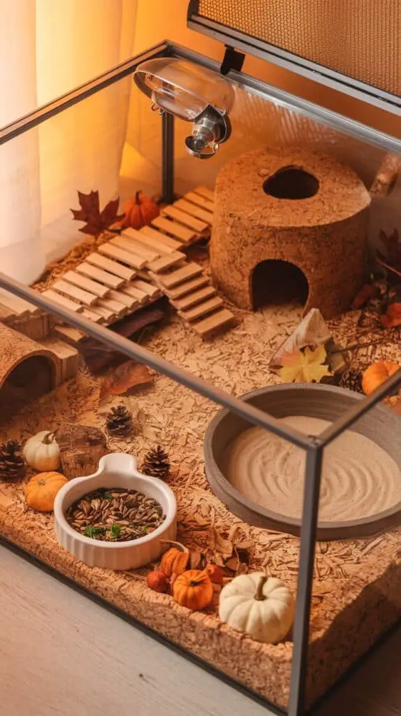 I remember my first “fall refresh” for my hamster’s tank. I swapped out the bright summer sand for earthy tones, tucked a few dried leaves around the hide, and added a wooden ladder I’d made from popsicle sticks. It looked like a tiny forest floor, and my hamster loved it—she disappeared under the bedding for hours, only popping up like a tiny forest spirit when it was time to snack.