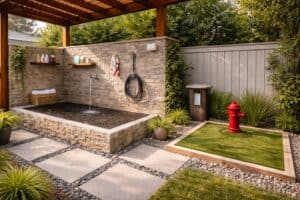 Start with flooring. Gravel and mulch look natural and drain well, but for an easy-clean option, think concrete pavers with rubber mats or artificial turf you can hose down. The goal is to avoid a permanent mud pit, especially after a storm. Add a slight slope for drainage, and install a “dry corner” with straw or sand where ducks can relax off the wet ground.