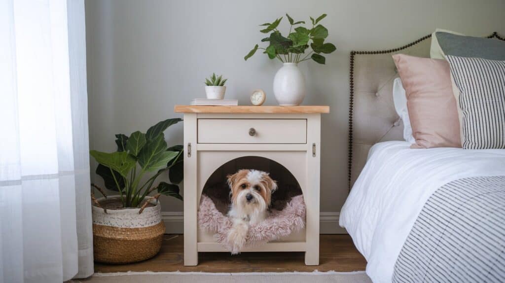 One night (okay, around midnight), I started scrolling for ideas, and that’s when I realised you can literally turn old furniture into beautiful dog beds that fit your style. It doesn’t have to be complicated or expensive either. A bit of sanding, a coat of warm paint, and a cushion can completely transform a forgotten table or bench into something cosy and charming.