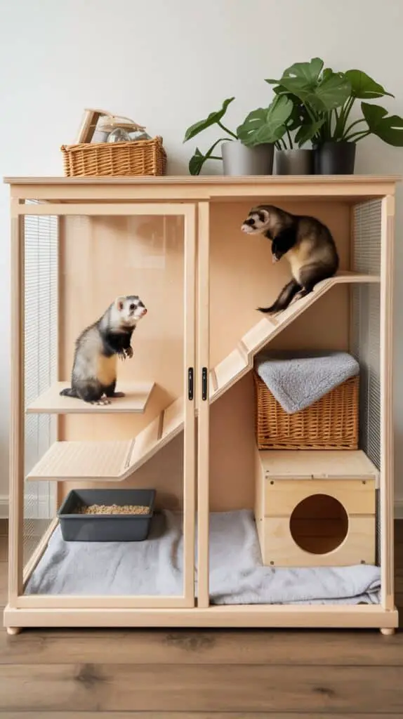 Ferrets may be small, but their personalities are huge — and their homes should reflect that. Whether you go DIY, repurpose furniture, or build something sleek and modern, the goal is simple: give them space to play, rest, and just be their funny little selves.