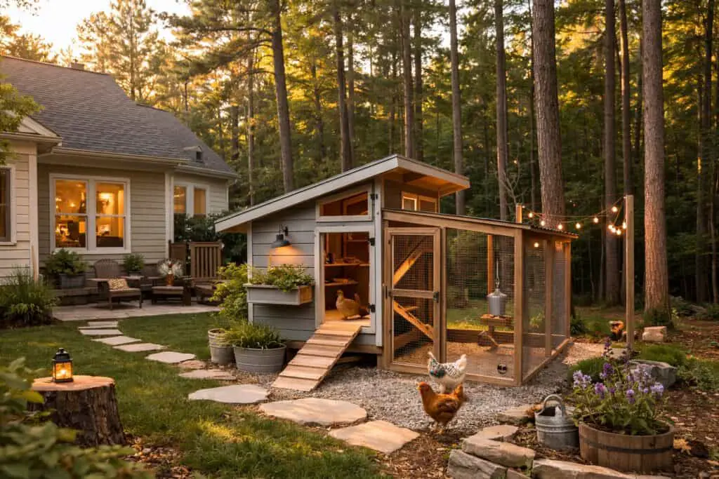 For small hobby farms, this style of design turns the chicken setup into part of a larger homestead ecosystem, where animals, gardens, and living spaces work together.