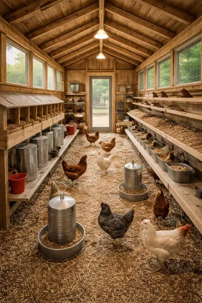 When chickens have clearly defined areas to eat, sleep, and lay eggs, the coop stays cleaner and the flock remains calmer.