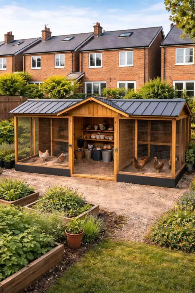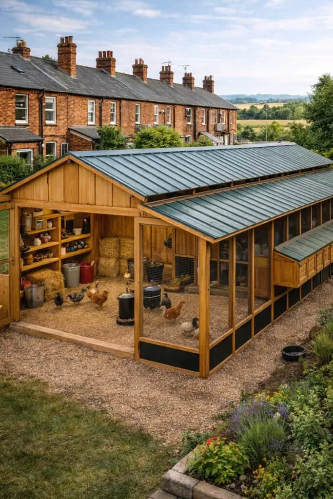 With smart organization built into the structure, even a backyard coop at the end of a row of homes can function like a small working farm setup.