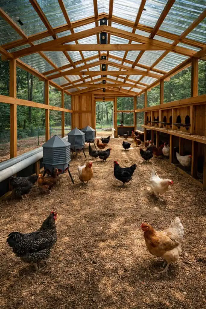 The central aisle also keeps the coop organized. Feeders, waterers, and storage shelves can be placed along the walkway for quick maintenance. For backyard farmers managing bigger flocks, this design keeps daily routines efficient and reduces time spent inside the coop.