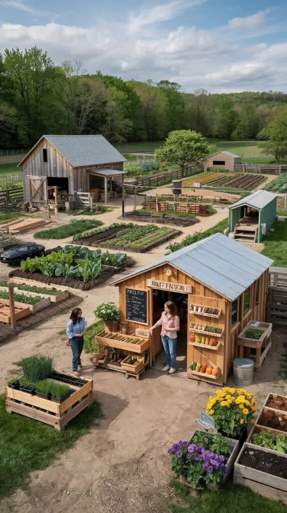 The layout is compact but full of charm — perfect for families wanting to dip into the local market scene. Add a few picnic tables or a herb garden display near the stand, and suddenly your mini farm isn’t just functional; it’s a destination.
