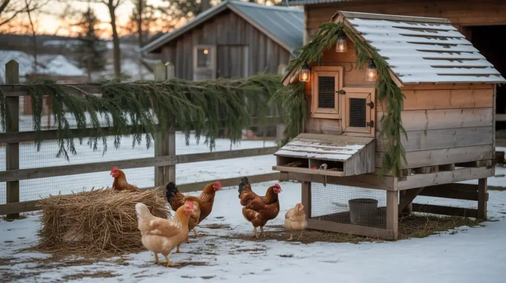 Winter on the farm can feel magical when you add just a touch of festive charm. Whether your chickens roam a large backyard, a homestead plot, or a small family farm, a winter makeover doesn’t need to be expensive or complicated. Instead of store-bought decorations, this approach uses natural materials, warm lighting, and gentle seasonal elements that keep your flock safe while making your outdoor space feel joyful and inviting. Think evergreen branches, rustic lanterns, soft winter lighting, and cozy shelter ideas that fit beautifully into the colder months. The goal? A chicken yard that feels warm, welcoming, and wonderfully festive for both your family and your birds.