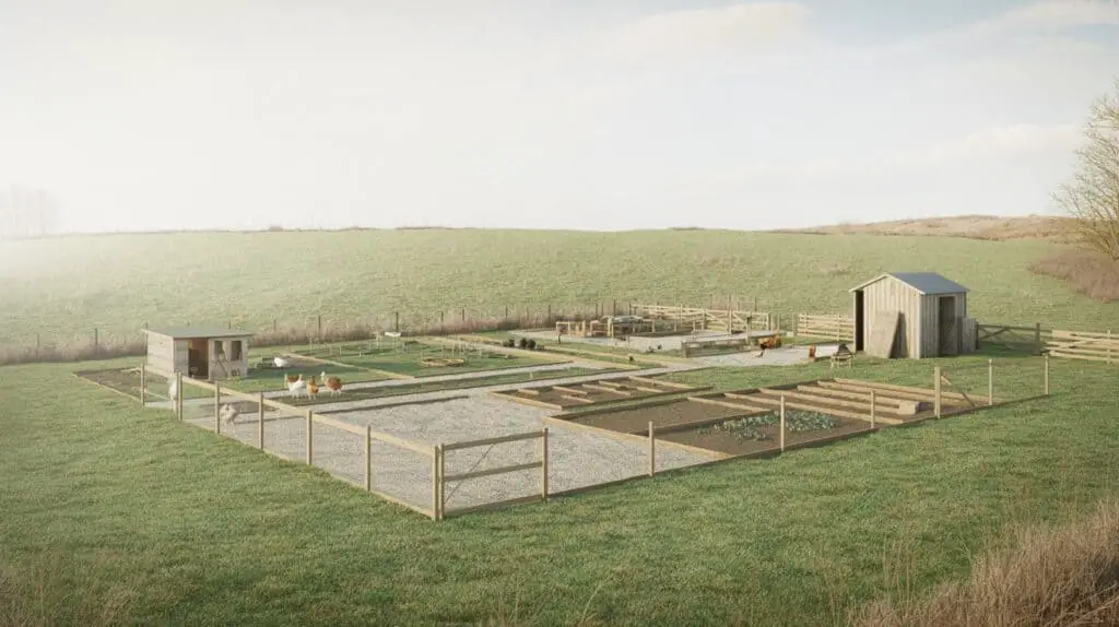 These hobby farm layout ideas focus on clarity, calm, and sustainability, without forgetting that kids, animals, mud, and real life are all part of the picture.