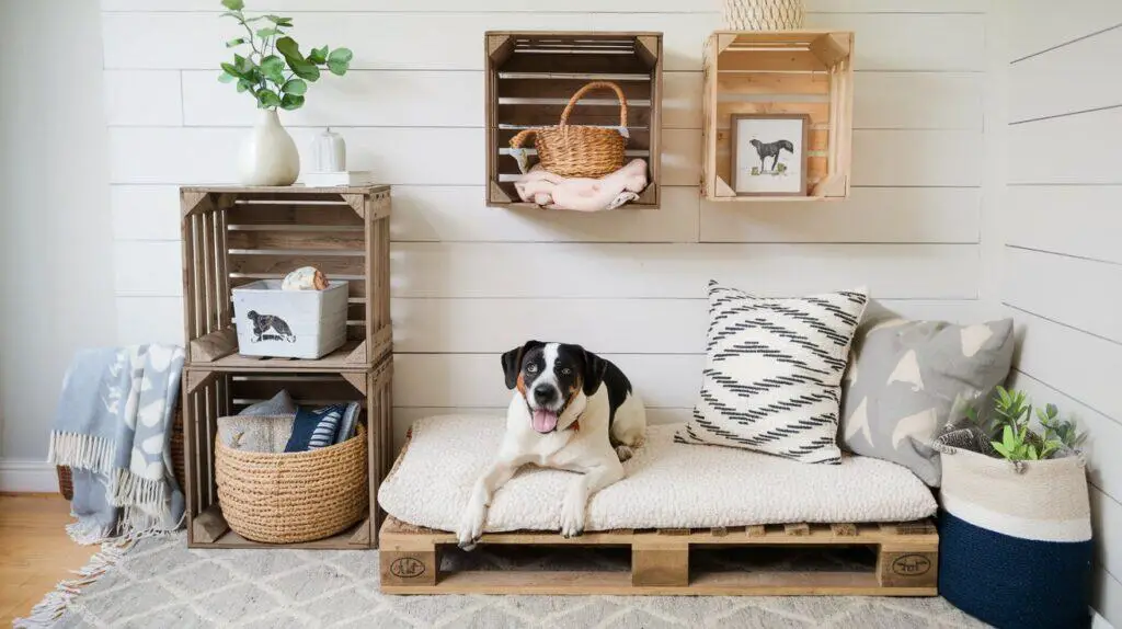 Creating a cozy corner for your dog doesn’t need to cost a fortune—or clash with the style of your home. With a few pallets, old wooden crates, soft cushions, and some family-friendly creativity, you can turn an unused space into a warm, organized, and adorable dog haven. These ideas are perfect for families who want a calm, pet-friendly home without spending big on custom furniture.
