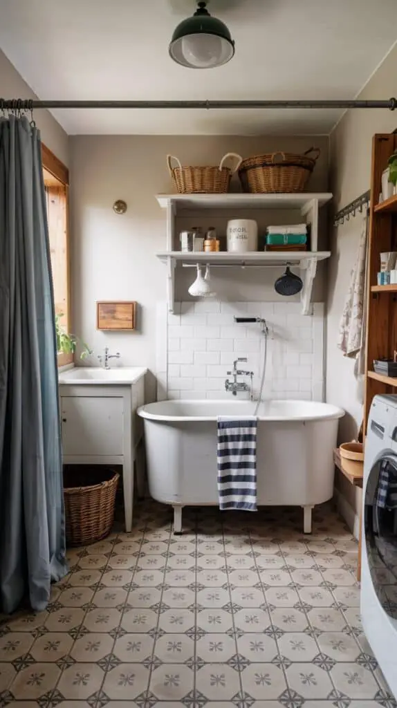- Add a “landing strip” right beside the wash area: a hook rail for towels, a small shelf for shampoo, and a floor mat that can be tossed in the wash.