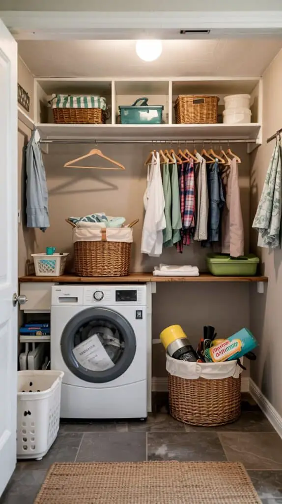 Laundry rooms get cluttered because they become a landing place for everything. The most realistic fix isn’t perfection—it’s a system that contains the mess.