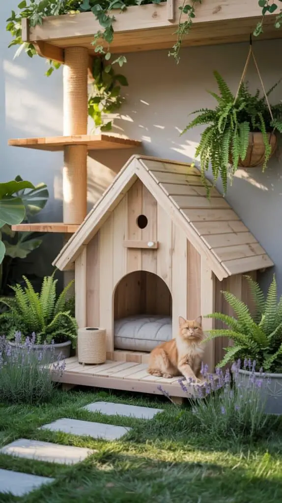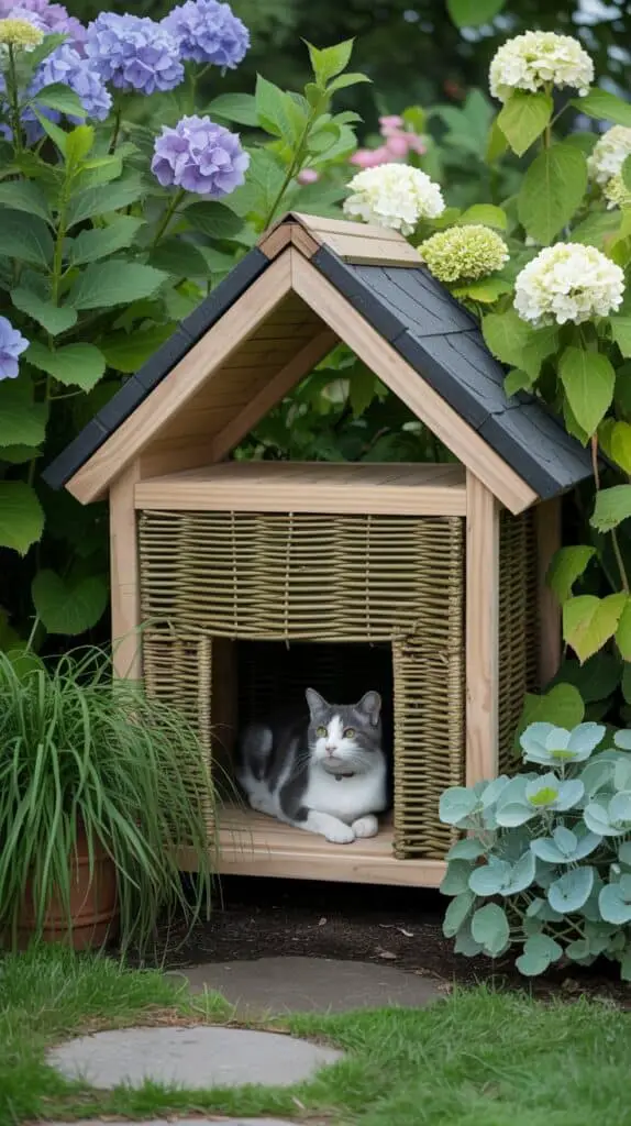 Below are unique and cozy garden cat house ideas that work in courtyards, small gardens, large yards, or even tiny patio spaces. Each design keeps safety in mind while creating a dreamy outdoor room that feels like a natural extension of your home.