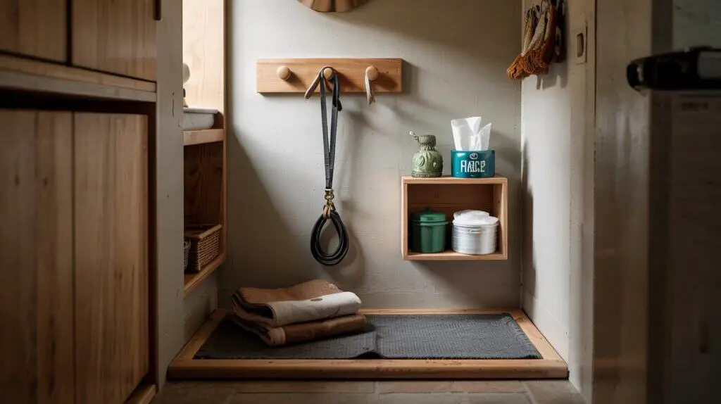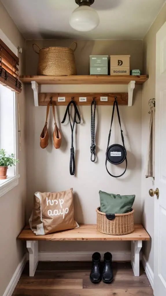 For households where the dog sleeps near you, you can borrow this exact concept as a dog nook in bedroom too—hooks for a nighttime leash or harness, a small shelf for wipes, and a cozy bed under. But in an entryway, the focus stays on “arrive and leave.” That’s why the hook placement matters so much.