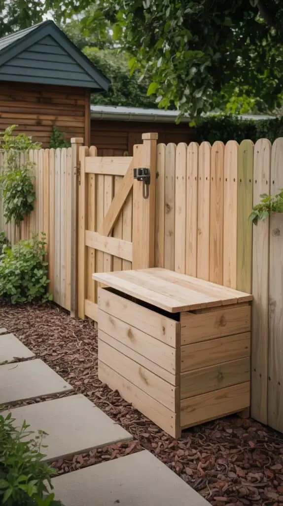 - Build a low-profile wooden box into the fence line with a lid on top.
