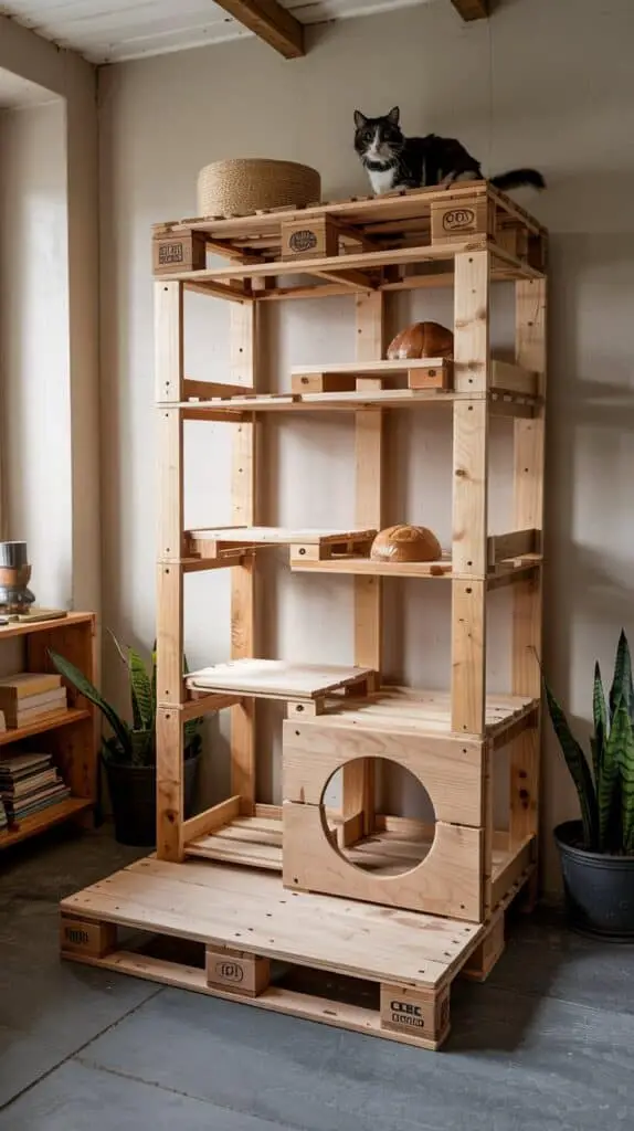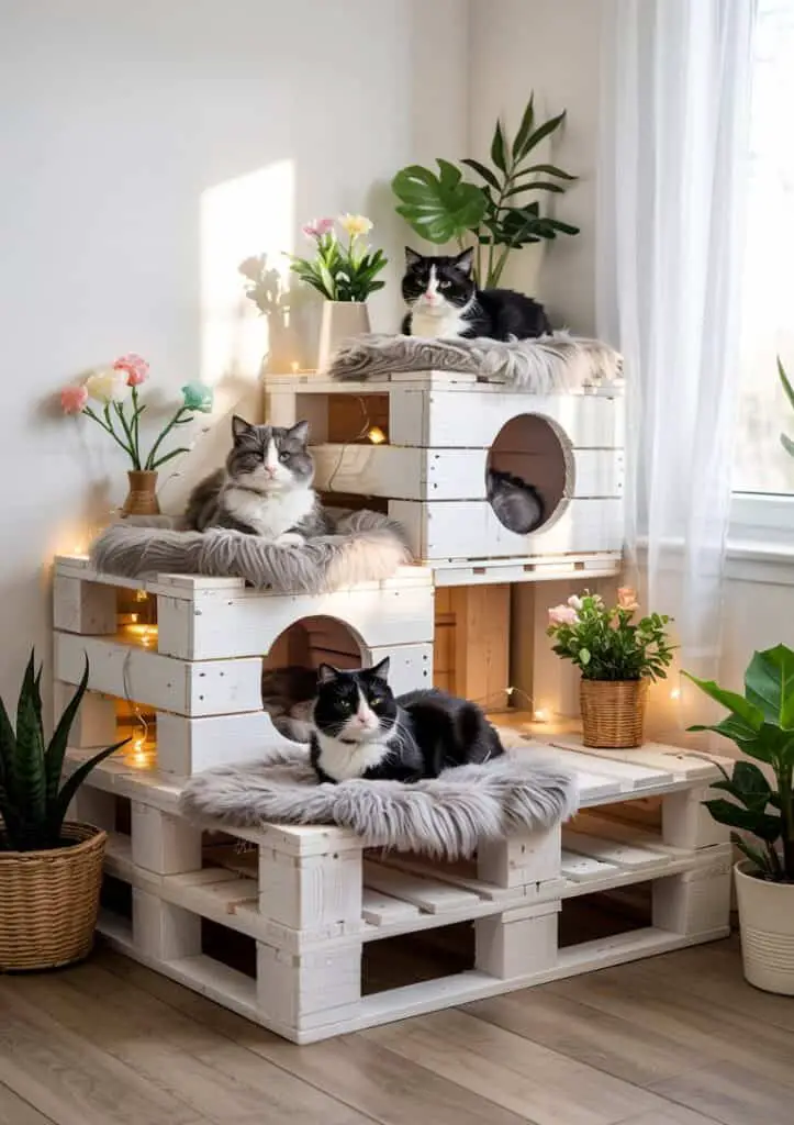 A cozy pallet cat garden tower works when you treat it like real furniture: smooth wood, stable structure, washable comfort, and a restrained pop of green. With the right prep and a simple stepped layout, you get the best of cat trees DIY and furniture made from pallets—vertical climbing space that looks natural indoors and feels safe for daily use. Keep it sturdy, keep it soft, and let the “garden” details stay intentional rather than busy, and you’ll end up with a piece your cat actually claims.