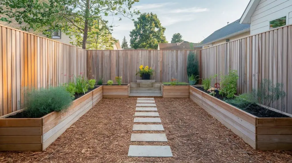A full mulch backyard can work, but it looks even better when you break it into little zones. Think lounging areas, walking paths, and even a small play spot. Use mulch for the high-traffic zones where grass would normally die, and leave space for stepping stones, potted plants, or a shady seating area.