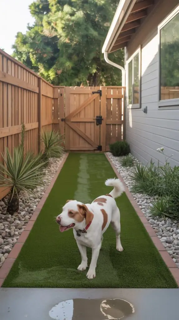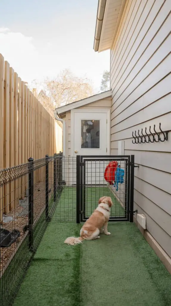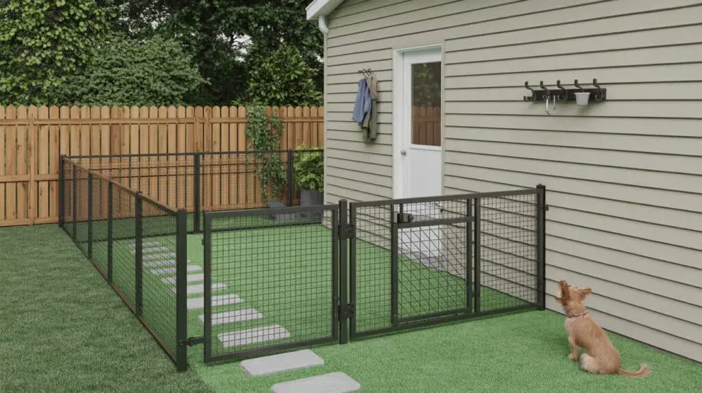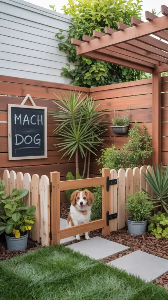 In compact yards, sometimes you need to split off a small corner just for your dog — especially if the main area is used for gardening or seating. A small dog area with a gate keeps things tidy.