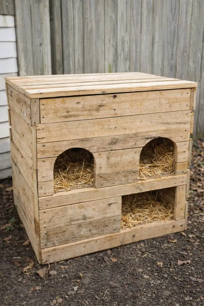 When building a DIY pallet cat house for stray cats, consider adding two openings. This prevents a cat from feeling trapped and offers a quick exit if another animal approaches. A cat house from pallets with dual entry holes increases safety and reduces stress for outdoor cats. Placement against a wall or fence adds extra protection while maintaining easy access.